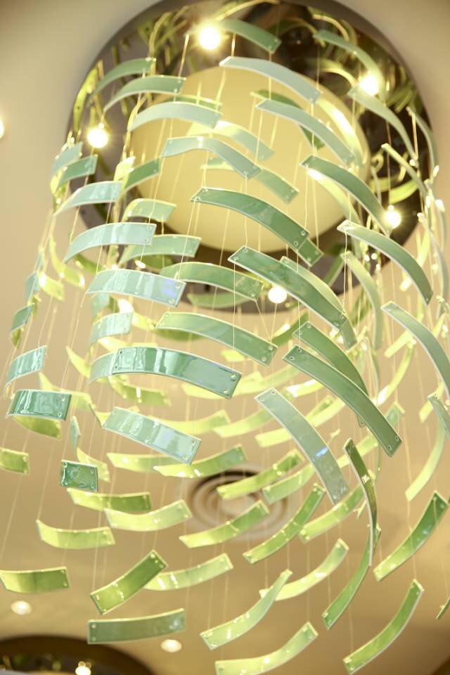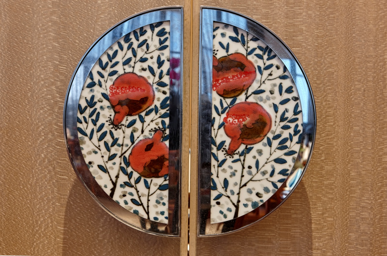 宴客大廳右側墻面一幅666個瓷葫蘆裝置畫,取葫蘆的諧音“福祿”,祝愿來賓福祿雙收生活福滿。