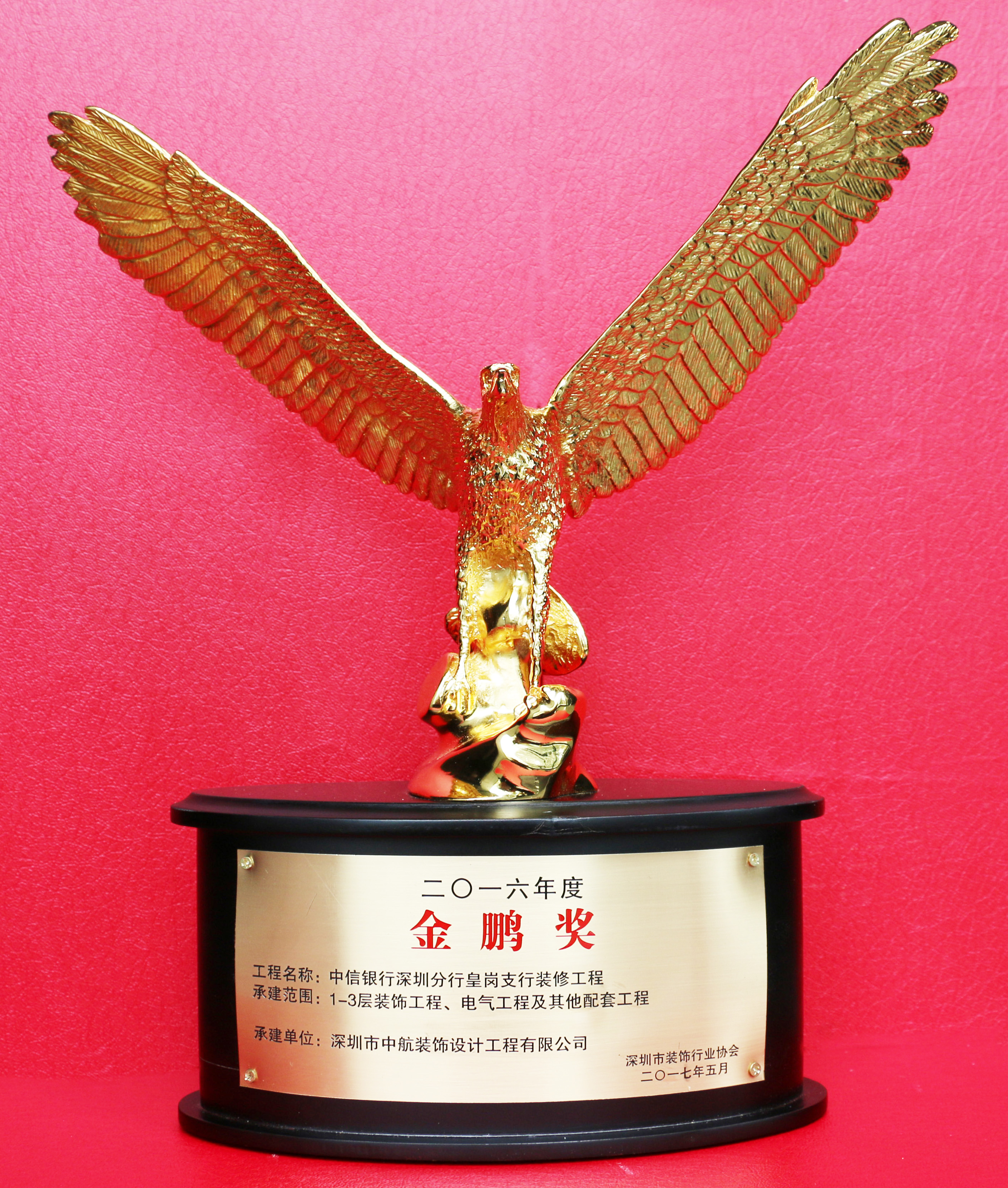 近日,代表深圳裝飾最高榮譽的2016年度深圳市裝飾工程“金鵬獎”評比揭曉,中航裝飾承建的中信銀行深圳分行皇崗支行裝修工程、文谷莊園羅湖組團外墻石材施工工程兩個項目雙雙獲獎。