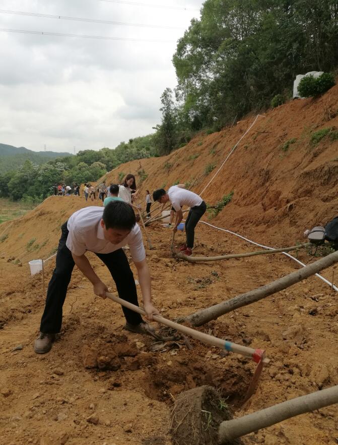 在寶安羅田森林公園植樹造林現(xiàn)場,紅旗飄揚(yáng)、橫幅高掛,大家頂著炎炎烈日,手拿鋤頭樹苗,揮鋤挖土,移栽樹苗,一起動手綠化自己的家園。大家三五成群,相互協(xié)作,從挖坑整地,栽植樹苗,到扶正壓實(shí),各道工序一絲不茍,整個(gè)植樹現(xiàn)場呈現(xiàn)一派熱火朝天的勞動景象。經(jīng)過兩個(gè)多小時(shí)熱烈有序的植樹勞動,共栽植木苗近百株,羅田森林公園山地上又新添一抹亮麗的新綠。大家看著那一片自己親手種下的樹苗在微風(fēng)中搖曳,無一不露出幸福的笑容。