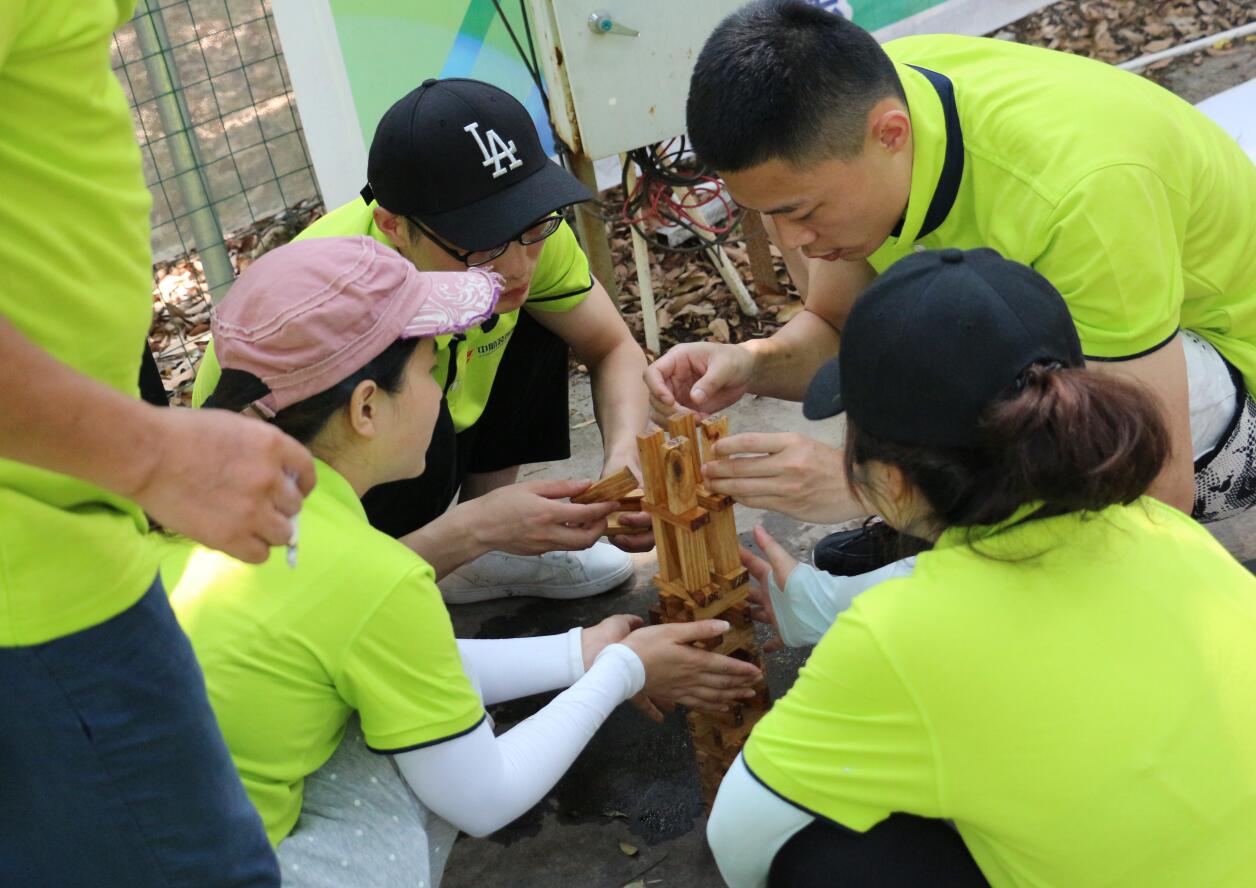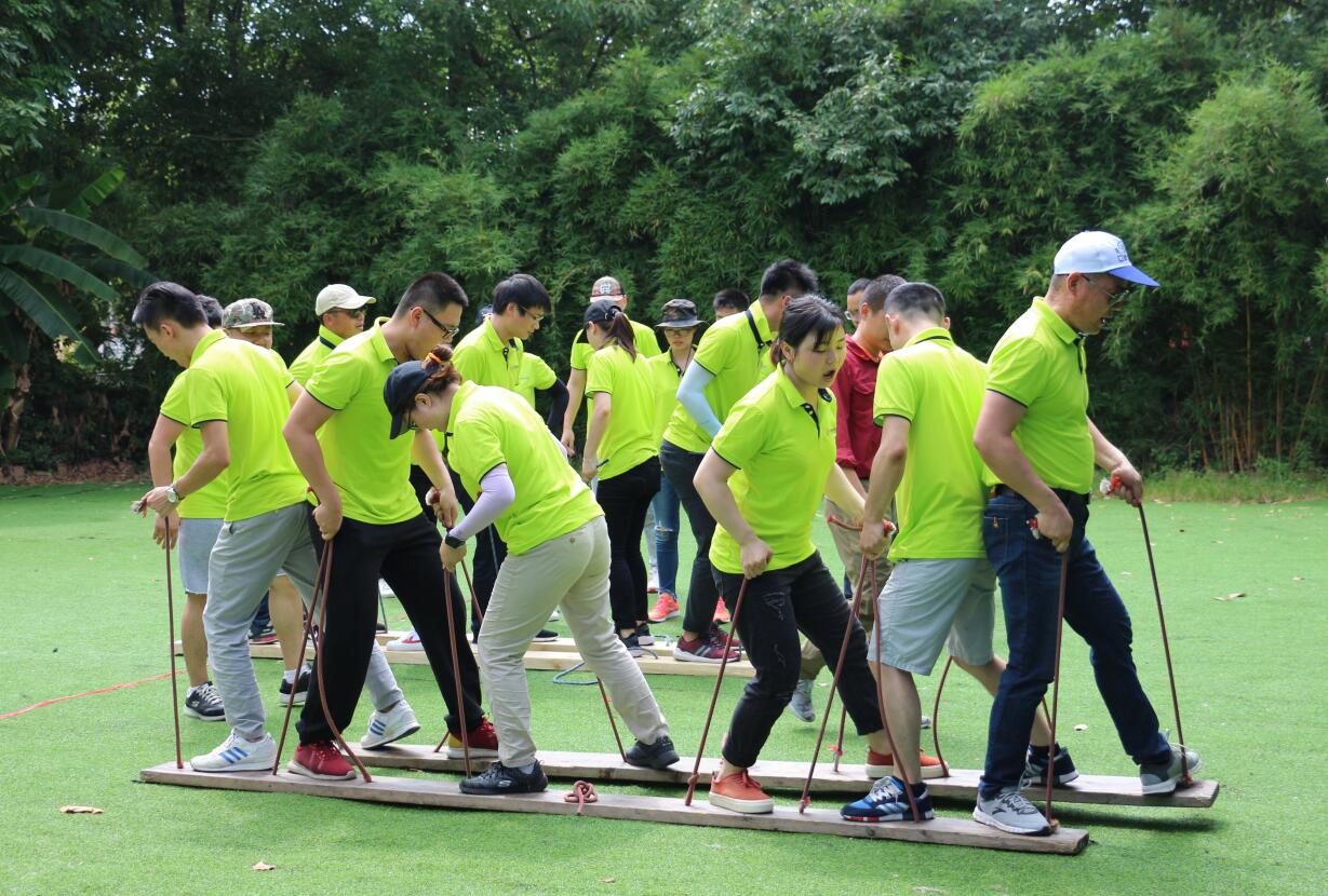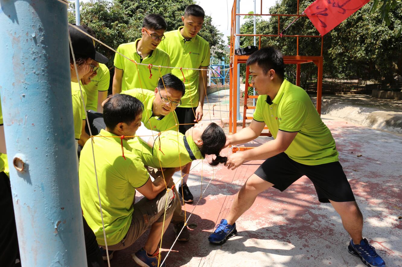 ? ? 活動開展過程中,大家在培訓師的帶領下被分成6個小組,各組隊員激情澎湃,嚴陣以待,拓展訓練拉開了序幕。 在拓展訓練項目中,一個個精心設計的比賽項目激發了大家濃厚的參與興趣與熱情。面對著各種挑戰,各隊隊員集思廣益,迎難而上,同心協力,隊員之間相互鼓勵,不逃避不放棄,所有團隊均圓滿完成了各拓展項目培訓。