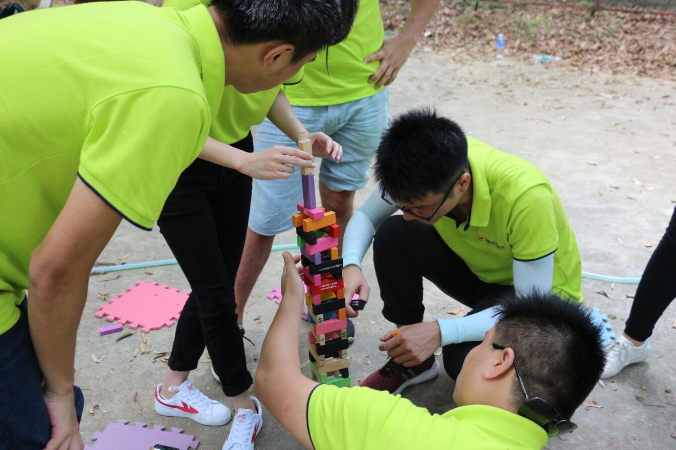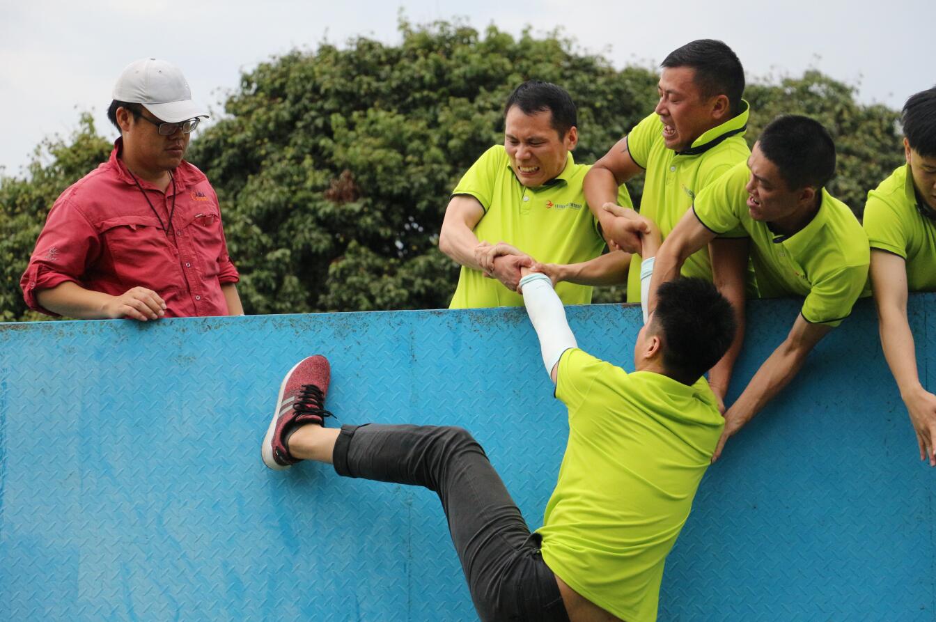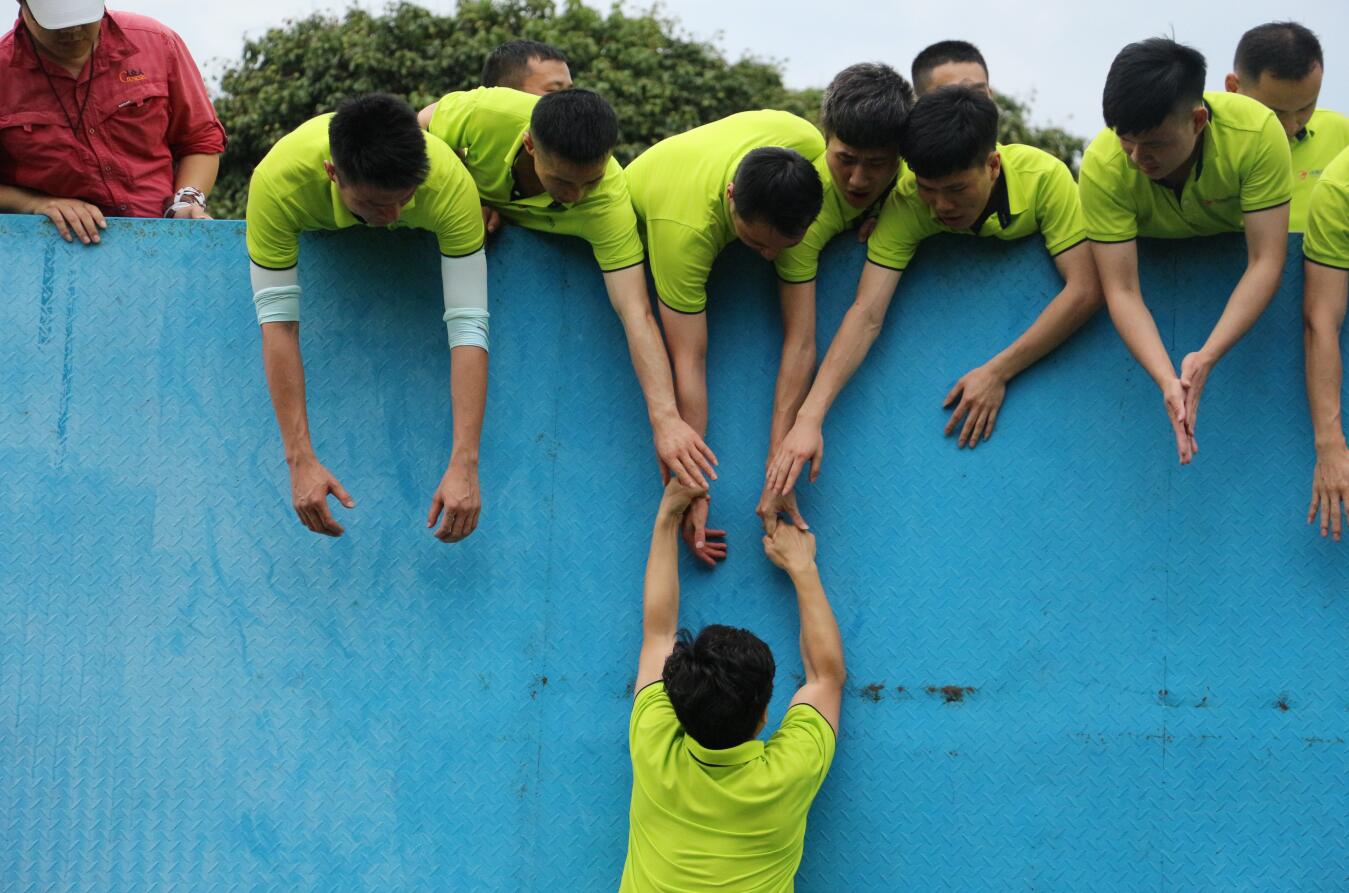 ? ? 活動開展過程中,大家在培訓師的帶領下被分成6個小組,各組隊員激情澎湃,嚴陣以待,拓展訓練拉開了序幕。 在拓展訓練項目中,一個個精心設計的比賽項目激發了大家濃厚的參與興趣與熱情。面對著各種挑戰,各隊隊員集思廣益,迎難而上,同心協力,隊員之間相互鼓勵,不逃避不放棄,所有團隊均圓滿完成了各拓展項目培訓。