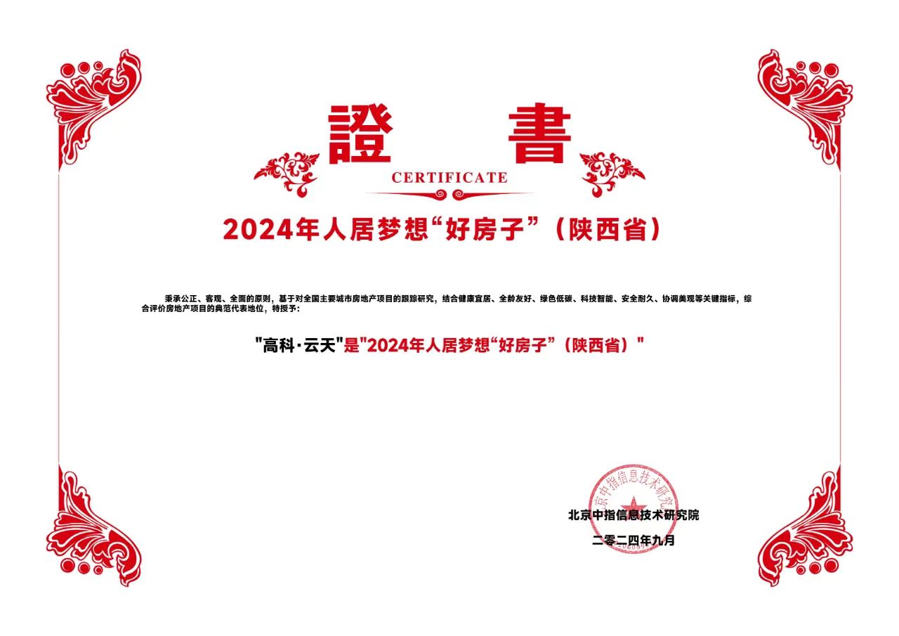 高科•云天作為西安劃時(shí)代里程碑項(xiàng)目,在“2024中國房地產(chǎn)品牌價(jià)值研究成果發(fā)布會(huì)暨第二十一屆中國房地產(chǎn)品牌發(fā)展論壇”,獲得了2024人居夢(mèng)想“好房子”的榮譽(yù)。這是行業(yè)內(nèi)的高度認(rèn)可,更是高科•云天品質(zhì)實(shí)力的體現(xiàn)。