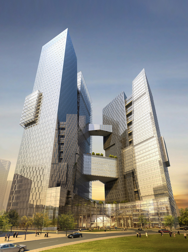 騰訊濱海大廈占地面積18650平方米,由南北兩座塔樓組成。兩塔樓間相互連接,象征著因特網(wǎng)各個(gè)遙遠(yuǎn)角落的連通,以一種更富有效率的方式將騰訊公司員工連接在一起。從濱海大道的角度眺望,南北塔樓形成了一條強(qiáng)大的都市邊際線,融合成為城市的科技動(dòng)脈,被視為深圳面向全球的又一創(chuàng)意性建筑。