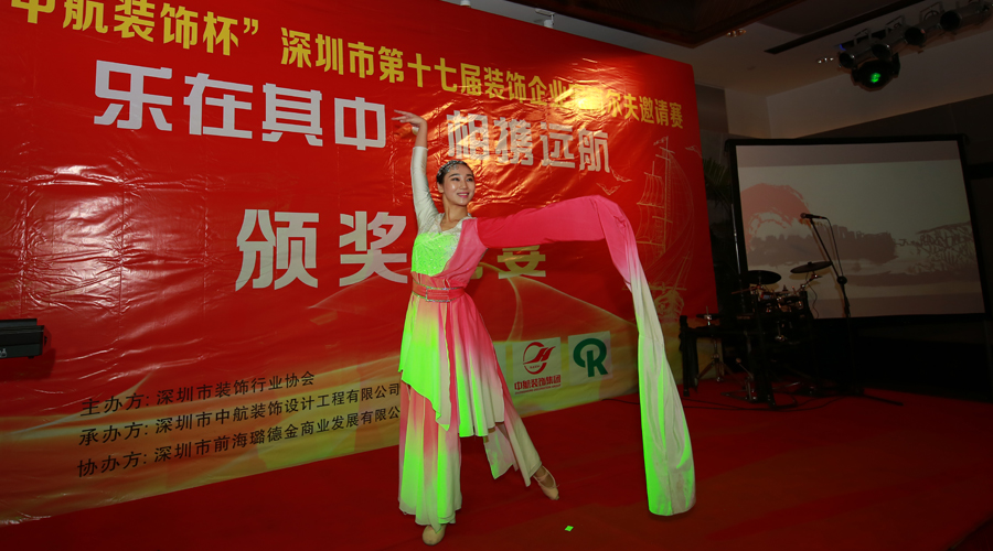 ? ? ? ?精彩的比賽結束后,熱鬧友好的氣氛一直延續到晚上,大家歡聚一堂,頒獎晚宴在精彩的節目表演中開始。深圳裝飾行業協會會長高剛致辭盛贊此次邀請賽的成功,對前來參與的行業精英表示感謝和對獲獎者表示祝賀,并就此次裝飾行業“營改增”政策應對問題做了分析與強調。接下來,在歡歌笑語中頒發了本次賽事的各項獎杯與獎品,其中激動人心的抽獎環節更是將晚宴氣氛一次一次的推向高潮。